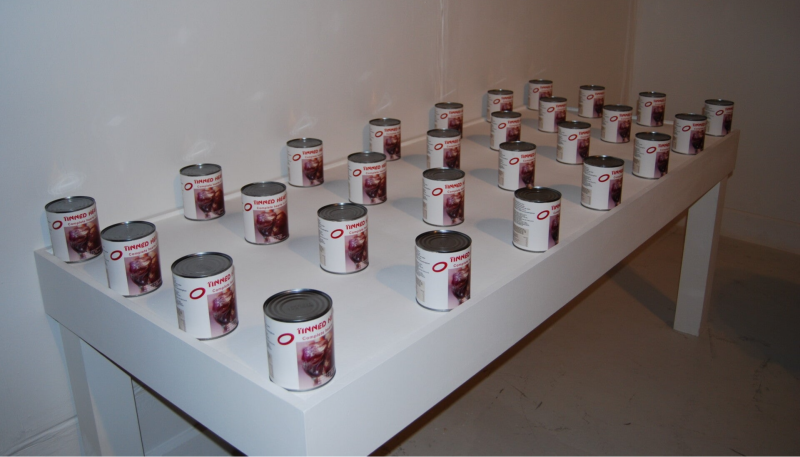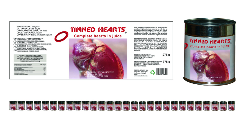 Printed paper labels and aluminum cans. / Etiquetas de papel impresas y latas de aluminio.